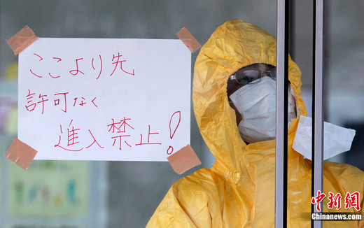 日本首相菅直人周一(14日)表示,在大地震和海嘯中受損的核電站仍然處于“警戒”狀態(tài)。東京電力公司周一向政府報告說,福島第一核電站輻射程度再次超過法定劑量。福島縣第一核電站在地震發(fā)生后已經關閉,但是因反應堆冷卻系統(tǒng)發(fā)生故障導致輻射超標。圖為在福島縣二本松,民眾隔離接受輻射檢測。
