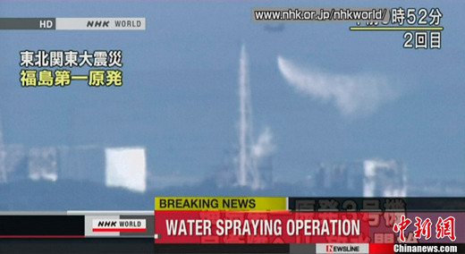 東京電力公司稱,直升機灑水前的當地時間17日上午9時40分,福島核電站核輻射量數值為3782微西弗,灑水后30分鐘,在離第三反應堆數十米的同一地點進行了檢測,得到的數值為3754微西弗,放水前后的數值基本上沒有什么變化。