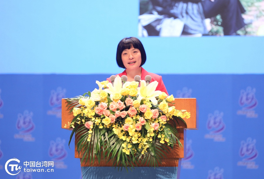 臺灣青年、廈門市海滄區海峽城鄉發展基金會理事長李佩珍在論壇大會上發言。(中國臺灣網 尹賽楠 攝)