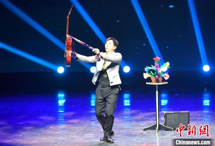 6月15日,海峽兩岸藝術(shù)交流活動(dòng)在廈門(mén)啟動(dòng),“藝”心同行文藝演出同時(shí)舉行。本次活動(dòng)包括海峽兩岸藝術(shù)交流節(jié)開(kāi)幕文藝惠民演出、閩臺(tái)大學(xué)生魔術(shù)交流大會(huì)、海峽兩岸青少年街舞展演等內(nèi)容。圖為臺(tái)灣魔術(shù)師粘立人在臺(tái)上表演節(jié)目。中新社記者 呂明 攝