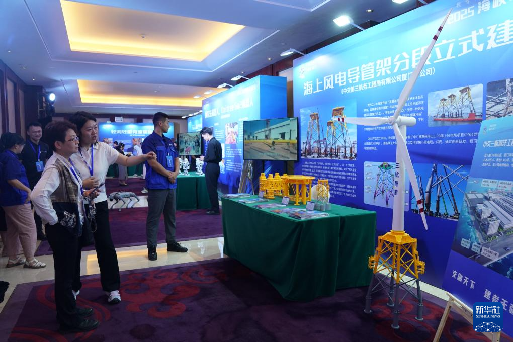 這是6月15日拍攝的2025海峽職工論壇智能高科技產(chǎn)品展示區(qū)海上風(fēng)電導(dǎo)管架分段立式建造展位。新華社發(fā)(王鑫攝)