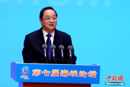 6月14日,中共中央政治局常委、全國政協(xié)主席俞正聲在廈門宣布,大陸將進一步為兩岸同胞交流創(chuàng)造條件,包括對臺胞來往大陸免予簽注,并適時實行卡式臺胞證。第七屆海峽論壇大會當天召開,俞正聲致辭時作上述表示。 中新社發(fā) 王東明 攝