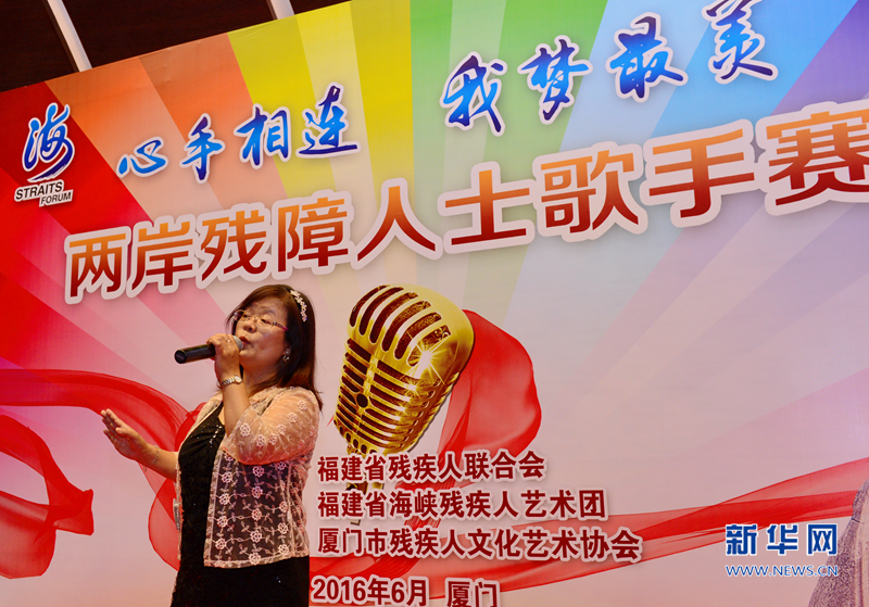 當(dāng)日,“心手相連,我夢最美”第二屆兩岸殘障人士歌手大賽開賽,來自兩岸的23名歌手同臺一展歌喉。