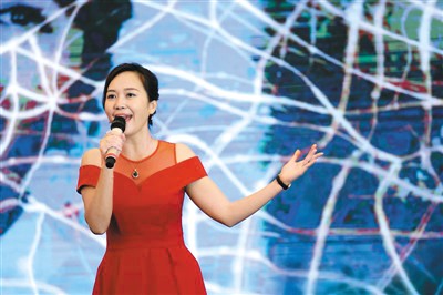 歌手陳姿在現(xiàn)場演繹論壇主題曲《中華一脈》。(主辦方圖)