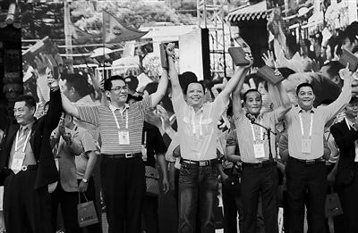 兩岸“同名村”一家親聯誼活動,近日在廈門市集美區板橋村舉行,與大陸祖地“同根、同源、同名”的臺灣“同名村”村里長們,與大陸鄉親、宗族長輩共敘親情。新華社記者 張國俊攝