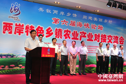 中國(guó)臺(tái)灣網(wǎng)6月20日消息 日前,第六屆海峽論壇·兩岸特色鄉(xiāng)鎮(zhèn)農(nóng)業(yè)產(chǎn)業(yè)對(duì)接交流會(huì)在廈門舉行。農(nóng)業(yè)部總經(jīng)濟(jì)師畢美家出席開幕式并致辭。