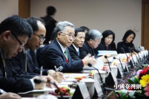 在河北銀行總部辦公室內(nèi),以許嘉棟為首的“臺灣金融團”成員們對河北銀行充滿興趣。(中國臺灣網(wǎng) 馬迪 攝)