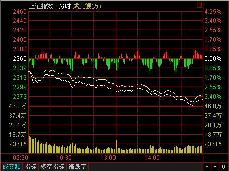 新華網消息 今日滬指暴跌3.65%,創2010年11月12日以來最大跌幅,國五條對于地產的打壓嚴重影響著行情的延續,受利空政策影響,早盤兩市雙雙出現了跳空低開的走勢,低開之后個股出現快速殺跌,滬指再度跌破2300點整數關口,繼續向下尋求支撐,兩市在權重板塊的帶領下,一路走低。板塊方面來看,房地產、水泥板塊重挫8%,建材、煤炭、金融等權重板塊也成為兩市大跌的主力軍,但股指大跌不掩題材股逆勢活躍,環保、食品安全、綠色農業等概念股逆勢上漲,兩市成交量較上一交易日明顯放大。