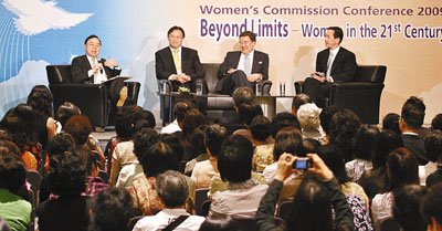 婦女事務委員會26日舉行名為“承擔、超越——21世紀女性”的研討會,邀請了特首曾蔭權、中聯辦主任彭清華及中華全國婦女聯合會副主席、書記處書記陳秀榕主禮,陳秀榕和香港勞工及福利局局長張建宗分別發表專題演講。