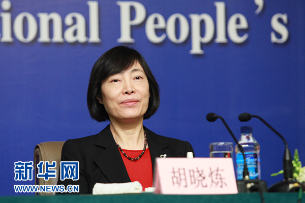 2011年3月11日10:45,十一屆全國(guó)人大四次會(huì)議新聞中心在梅地亞舉行主題為“貨幣政策及金融問(wèn)題”記者會(huì)。人民銀行行長(zhǎng)周小川、人民銀行副行長(zhǎng)胡曉煉、人民銀行副行長(zhǎng)劉士余、人民銀行副行長(zhǎng)兼國(guó)家外匯管理局局長(zhǎng)易綱出席記者會(huì)接受媒體采訪。圖為中國(guó)人民銀行副行長(zhǎng)胡曉煉。新華網(wǎng) 吳莼攝
