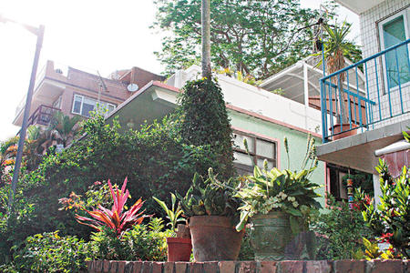 寶華園范圍相當廣寬,從碼頭一直伸延到一個小山丘之上,以及山丘的另一邊,有近一百座村屋,依山勢而建,每幢樓高兩至三層不等,樓齡超過三十年。位于榕樹灣的寶華園,可算是南丫島中部最大的村屋群之一,三面環海,景致怡人,是名副其實背山面海的“靚屋”。從碼頭往返寶華園的居民,起碼有五成是外籍人士。