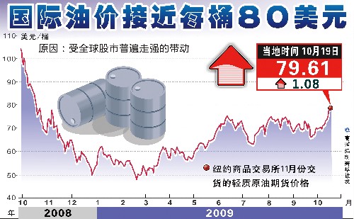 據上海證券報報道一波八連陽、累計升幅逾14%的上漲小高潮,將國際油價送上了又一個整數關口——80美元。伴隨著全球股市的高歌猛進和美元的跌跌不休,20日電子盤中,紐約11月份原油期貨輕松突破80美元,最高觸及80.40美元,創下一年來盤中新高。