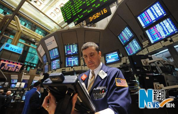5月6日,交易員在美國紐約證券交易所內(nèi)工作。當(dāng)日,在歐洲債務(wù)危機(jī)的重壓下,紐約股市暴跌,截至收盤,三大股指的跌幅均超過3%,而道瓊斯指數(shù)盤中瞬間曾一度下跌將近1000點(diǎn),是歷史上單日下跌點(diǎn)數(shù)最多的一次。新華社記者申宏攝