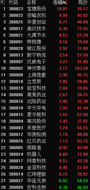 國恒鐵路等20余只個股漲停,無股跌停。創業板公司2跌26漲,其中2只漲停。