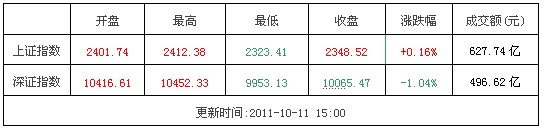 滬深股市午后震蕩走低,兩市股指漲跌不一。滬指跌破998和1664點連線支撐。煤炭板塊午后再次跳水,跌幅一度超過5%。兩點過后,滬指翻綠,深成指跌破萬點大關。就大盤而言,滬指考驗2319一帶的支撐;多空在深成指10000點重要關口再次展開爭奪。盤面上,一改開盤時的滿盤皆紅,僅金融等少數(shù)板塊走強。3G、家電、軍工等板塊跟隨煤炭殺跌。尾盤時,兩市再次拉起,滬指收紅,深成指勉強收回萬點。截止收盤,上證指數(shù)收報2348.52點,漲幅+0.16%,成交627.74億;深證指數(shù)收報10065.47點,漲幅-1.04%,成交496.62億。