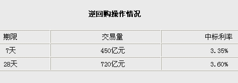 其中,7天期逆回購450億元,中標利率3.35%;28天期逆回購720億元,中標利率3.60%。(中新網金融頻道)