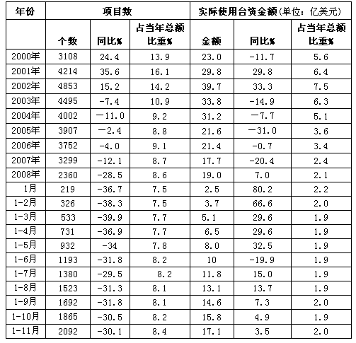 臺商投資大陸統(tǒng)計表(2000年—2008年)
