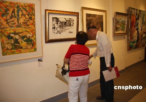 圖為臺灣藝術愛好者在欣賞“海峽兩岸繪畫聯(lián)展”。6月13日,中國文學藝術界聯(lián)合會與臺灣文藝協(xié)會聯(lián)合舉辦的《世紀初藝術——海峽兩岸繪畫聯(lián)展》,在臺北美術界地位最尊貴的“孫中山紀念館”中山畫廊北室開幕,畫展精選60位兩岸頂尖藝術家的作品。中新社發(fā) 耿軍 攝