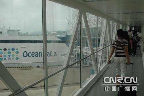 旅客正在通過廊橋登上“海洋拉拉”號