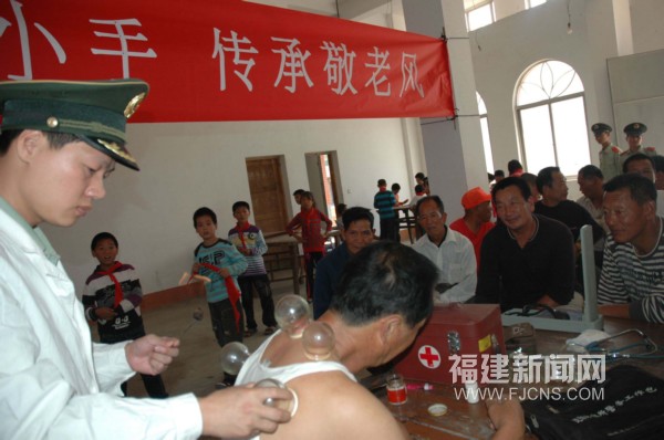 中國傳統的敬老節--“九九重陽節”到來前夕,10月25日,福建省福清南青嶼邊防派出官兵聯合近百名船舶停靠當地碼頭的臺胞、當地小學生一起開展了“大手牽小手 傳承敬老風”歡慶重陽節活動。當日上午,邊防官兵與20余名小學生及10多名臺胞到當地孤寡老人家里話家長、量血壓、包餃子、煮壽面等活動歡慶重陽節,受到了老人們的熱烈歡迎。(孫旭暉 連仁良)