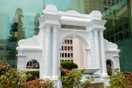 新竹清華大學行政大樓后方有個拱門造型的“清華園”,這是以北京清華二校門清華園1/3比例縮小制作的,展現兩岸清華的血脈淵源。 圖片來源:“中央社”