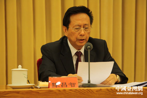 中國和平統(tǒng)一促進(jìn)會副會長陳昌智主持本次大會(中國臺灣網(wǎng) 王君飛 攝)