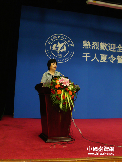 上午九時左右,北京航空航天大學為這些遠道而來的客人們舉行了簡短而隆重的歡迎儀式。在歡迎儀式上,北京航空航天大學副校長唐曉青女士致歡迎詞,她在致辭中說北航歷來重視和臺灣大學的交流和合作,每年都會舉辦兩岸的學生交流活動,她希望以后能有更多的臺灣青年學子來大陸、來北航交流和參觀。臺胞青年千人夏令營的教師和學生代表以及北京航空航天大學的志愿者代表也分別發言,表達他們對兩岸青年交流的感悟和期盼,也希望通過這樣的交流能夠增加彼此的理解和溝通,共同為兩岸的和平發展做出應有的貢獻。