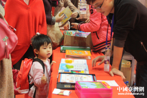 2011年重慶臺灣名品博覽會于11月17日至20日在重慶國際會展中心舉行,圖為小朋友在家長帶領下參加展會。(中國臺灣網 楊麗 攝)