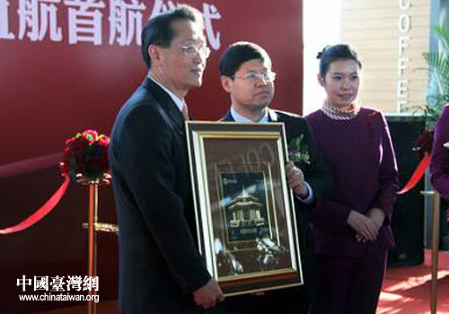 中國臺灣網12月19日沈陽消息 日前,臺灣立榮—長榮航空開通沈陽—臺北航線。遼寧省機場管理集團公司于沈陽桃仙國際機場舉辦歡迎儀式及首航儀式。