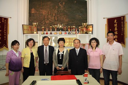 和哈爾濱市花園小學(xué)教師合影留念,臺北市教育局副局長曾燦金(右三),臺北市博愛小學(xué)校長蘇再添(左三)