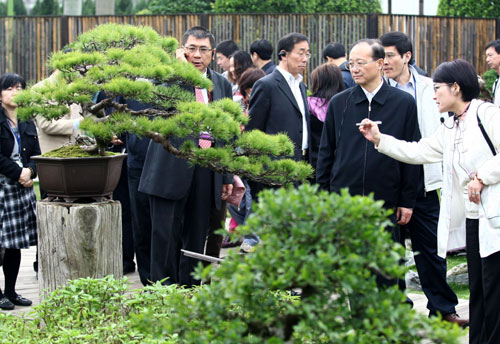 邵琪偉今天上午率大陸各省旅游局處首長等31人,由臺北市副市長陳威仁陪同,參訪花博。一行人參訪熱門展館夢想館、未來館、養生館,最后行經花之隧道,前往寰宇庭園。