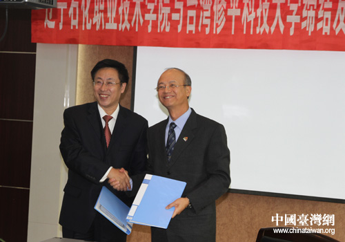 中國臺灣網11月7日錦州消息 日前,應遼寧石化職業技術學院邀請,臺灣修平科技大學鐘瑞國校長一行三人抵錦州考察,并就締結友好關系舉行簽字儀式。遼寧石化職業技術學院院長徐繼春熱情接待了臺灣友人。
