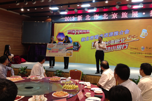 隨后,侯友宜在現(xiàn)場舉辦了激動人心的現(xiàn)場抽獎大會,抽取了新北市旅游“免費(fèi)機(jī)票+酒店+觀光出租車”代金券,中國臺灣網(wǎng)副總編吳彤獲得了大獎。侯友宜還告訴北京市民一個好消息,就是在接下來的北京旅展中,除了有伴手禮品試吃、參加現(xiàn)場小活動送贈品以外,前1688名購買新北市旅游“免費(fèi)機(jī)票+酒店+觀光出租車”客制化套裝游程優(yōu)惠方案者還可以抽大獎,并且都可以享受優(yōu)惠價格5小時游覽新北市景點(diǎn),以觀光出租車的貼心導(dǎo)覽服務(wù)來新北旅游。