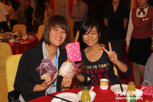 兩地學生交換禮物,好開心(中國臺灣網 陳寧 攝)