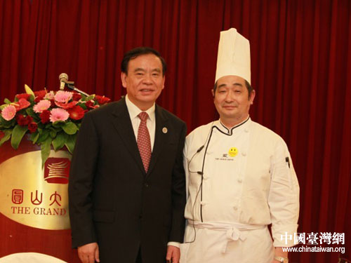 呂祖善與圓山飯店的大陳村廚師合影。(浙江省臺辦王健攝)