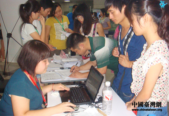 今日一早,便有來自大陸各地的參賽團隊陸續抵達北京師范大學,選手們在賽事組委會的安排下登記、抽簽、拷貝資料,并在團隊風采展示版前涂鴉、貼照片,記錄參賽感受的同時也為兩岸大賽送上真摯祝福。據大賽組委會介紹,本屆大賽競爭激烈,高校熱情參與,共吸引來自大陸320多個省市和地區的2800多所高校,超過20萬師生報名參賽。經過緊張的初賽、復賽、分賽區決賽后,來自大陸155所高校的239支團隊晉級大陸賽區總決賽。