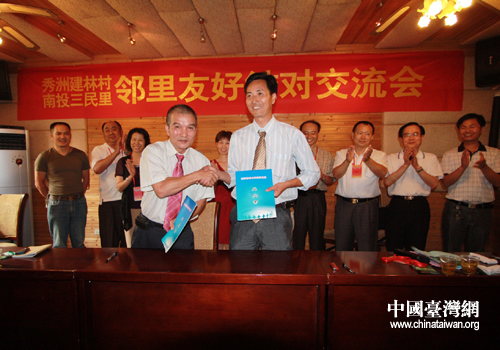 臺灣南投縣三民里與浙江嘉興市秀洲區王店鎮建林村簽訂兩岸鄰里交流意向書(圖片來源:嘉興市臺辦)