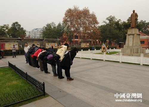 在辛亥革命武昌起義紀念館前,兩岸學子懷著無比崇敬的心情,虔誠莊重地向孫中山先生銅像敬獻了花籃,共同緬懷和追思辛亥革命偉大的先行者,共同傳承辛亥革命的偉大精神。