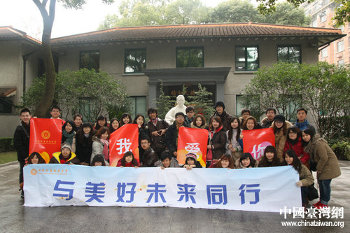 兩岸學子在上海宋慶齡故居合影。(中國臺灣網 郭瑩瑩 攝)