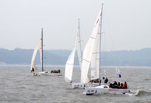 兩岸大專杯帆船賽第1階段比賽,經過2個多小時的海上競爭,總成績是由對岸包辦前3名,分別是廈門大學第1名,集美大學第2名,廈門理工學院第3名。
