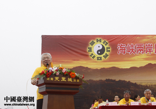 臺(tái)灣著名易經(jīng)學(xué)者、博士朱高正先生發(fā)言。(圖片來(lái)源:河南省臺(tái)辦)