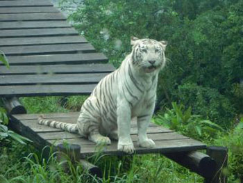 中新網8月4日電 據臺灣“中廣新聞”報道,經過一個半月的檢疫,廣州香江動物園5月下旬送給高雄壽山動物園的兩只白老虎“昭海”與“歡樂”終于公開亮相。