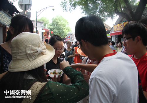 品嘗小吃,樂在其中。(中國臺灣網 李瑞艷 攝)