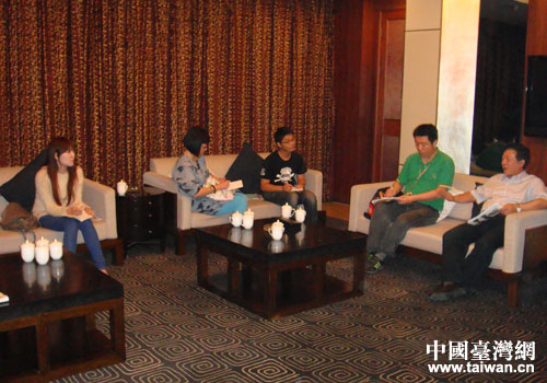 記者采訪市領導(圖右一)。(圖片來源:安徽省臺辦)