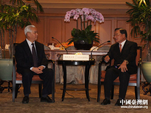 四川省政協(xié)主席陶武先在臺(tái)北會(huì)見(jiàn)海基會(huì)董事長(zhǎng)江丙坤。圖片來(lái)源:四川省臺(tái)辦