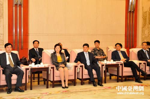 山東省政府副秘書長張忠明,省臺辦主任張雪燕、省經信委巡視員李建生、省商務廳副廳長劉曉江、浪潮集團總裁辛衛華參加會見。(圖片來源:山東省臺辦)