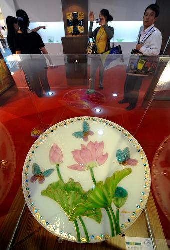 9月17日,觀眾在臺(tái)灣工藝品展位前參觀。新華社記者 孫參 攝
