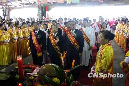 圖為高雄市旗后臨水宮信眾專程北上參加法會,共襄盛舉。中新社發(fā) 黃少華 攝