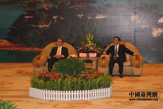 湖南省省長周強(右一)會見參加第五屆湘臺經(jīng)貿交流合作會的臺商代表(中國臺灣網(wǎng) 陳寧 攝)