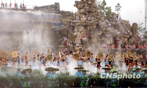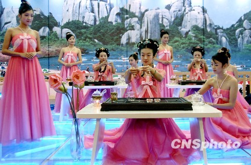 圖為經(jīng)過精心編排的大型采茶舞亮相第三屆海峽兩岸茶博會。中新社發(fā) 王東明 攝